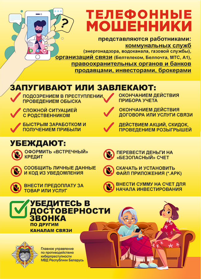Злоумышленники выдают себя за сотрудников коммунальных служб (энергонадзора, водоканала, газовой службы), а также представителей правоохранительных органов, банков или других государственных структур. Они могут звонить по телефону, в том числе по стационарной линии, или использовать мессенджеры (Viber, Telegram, WhatsApp). Цель — под любым предлогом получить личные данные, реквизиты банковских карт или вынудить перевести деньги на «безопасные» счета. Часто работают в паре: один представляется сотрудником коммунальной службы, другой – правоохранительных органов или банка, убеждая жертву, что ее данные скомпрометированы, и для «спасения» средств необходимо оформить кредит или перевести деньги.